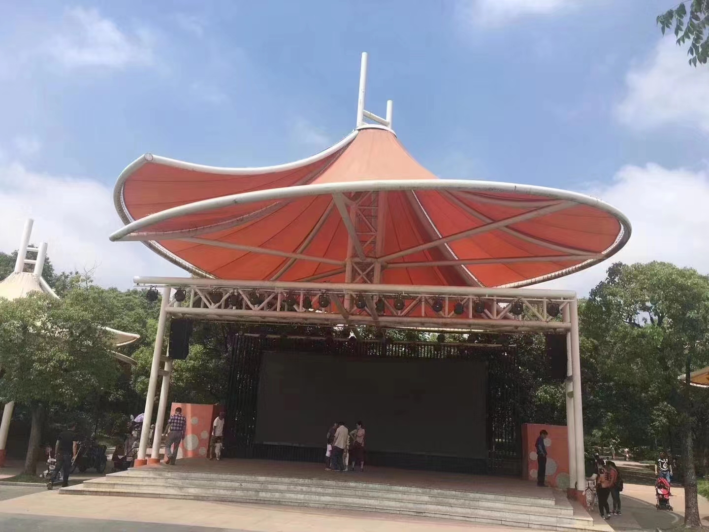 上海語祥膜結構裝飾工程有限公司承接膜結構景觀棚、膜結構自行車車棚 、膜結構交通設施  膜結構停車棚、推拉篷、充電樁、候車廳、體育看臺、設施景的生產、銷售、制作、安裝施工以及使用維護。